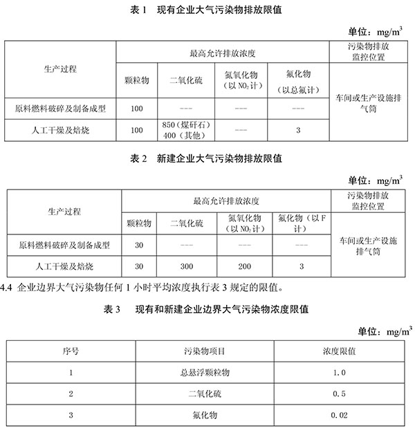 現(xiàn)有磚瓦工業(yè)大氣污染物排放標準